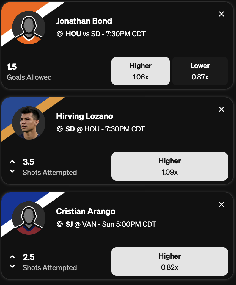 Pairing Bond with Hirving Lozano’s shot prop does ding the multiplier on our entry, but that normal nerf is negated by the 30% boost promotion. So we feel great being able to grab this prop at 3.5, considering Lozano is averaging 4.3 shot attempts per 90 minutes this season. He’s over this number in 10 of 14 games when playing 80 or more minutes in 2025, something he’s done in four of his last five appearances.